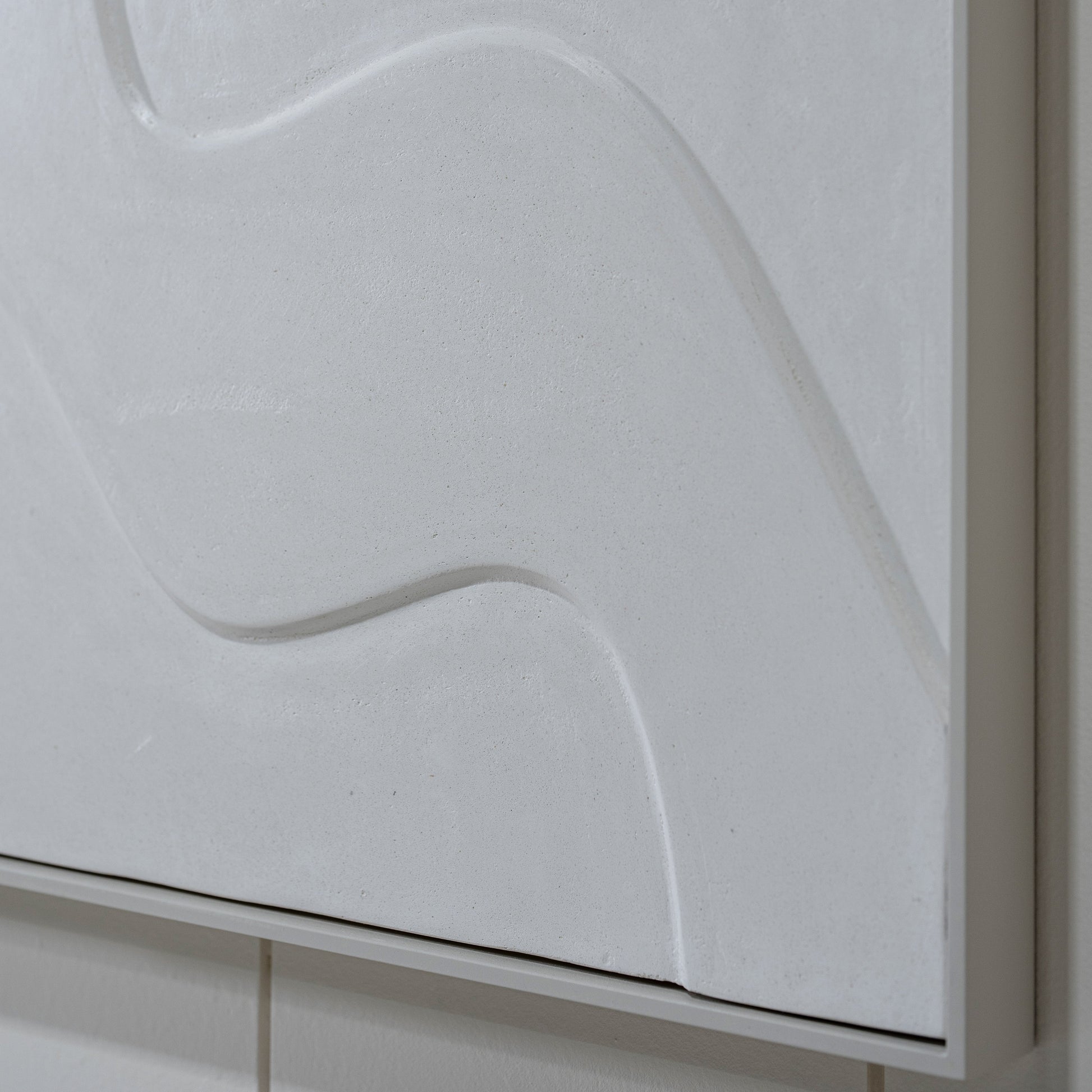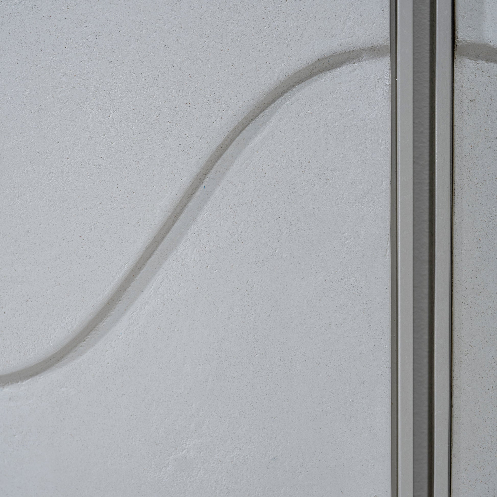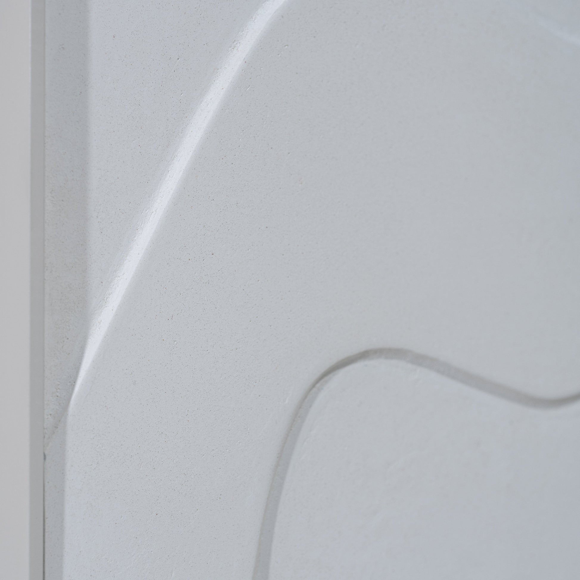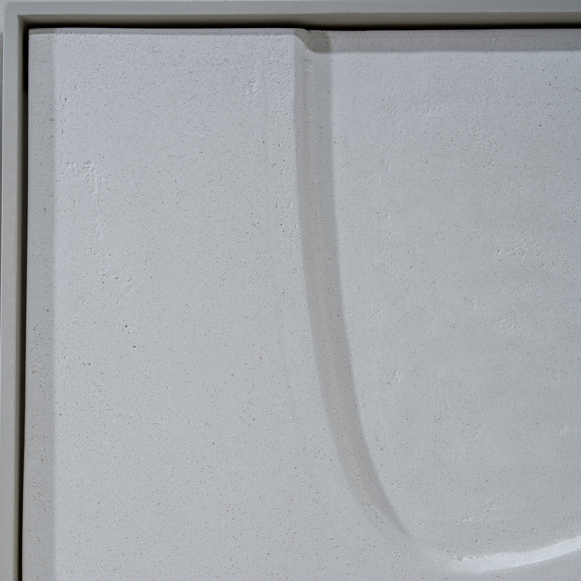 Material: Carved wood panel recovered with white limestone.
